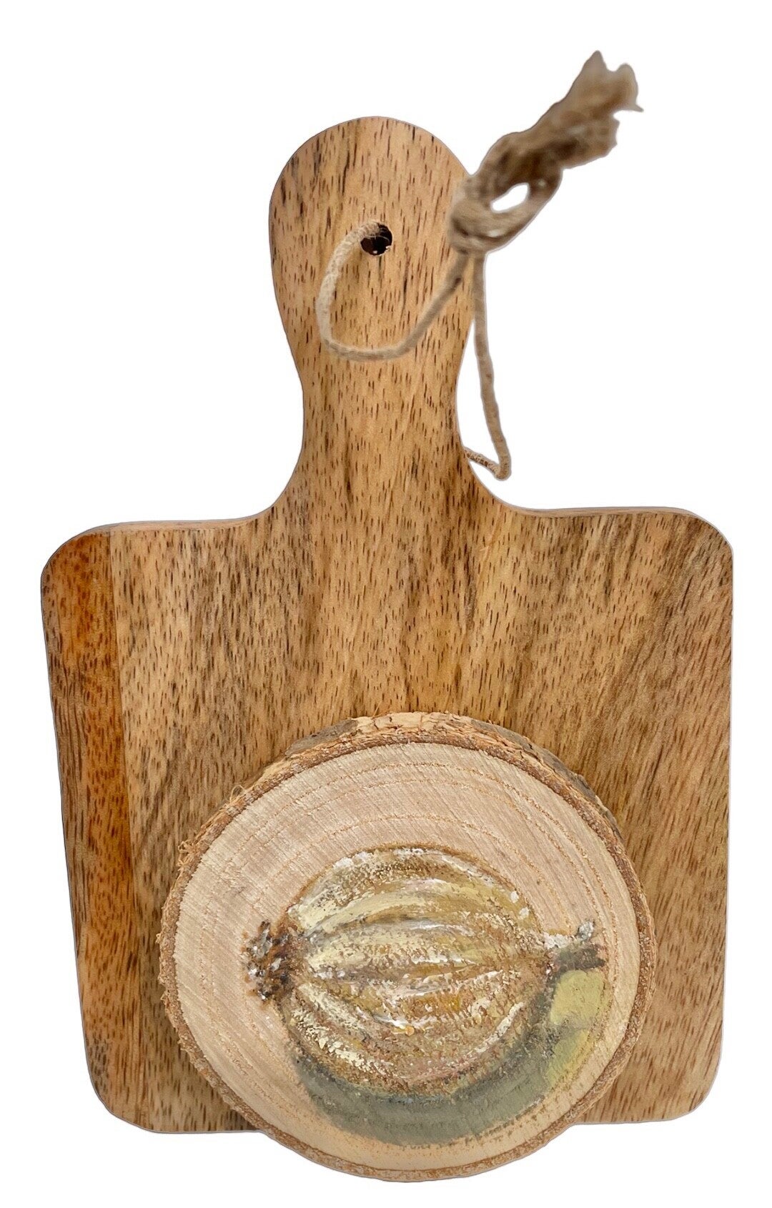 houten boomschijfje handschilderd: met knoflook of ui