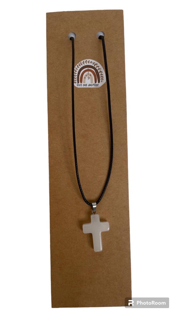 • Hardstenen kruisje met zwart (verstelbaar) koord