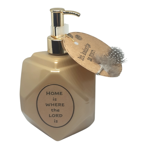 Grote zeepdispenser met handzeep 500 ml met tekst.